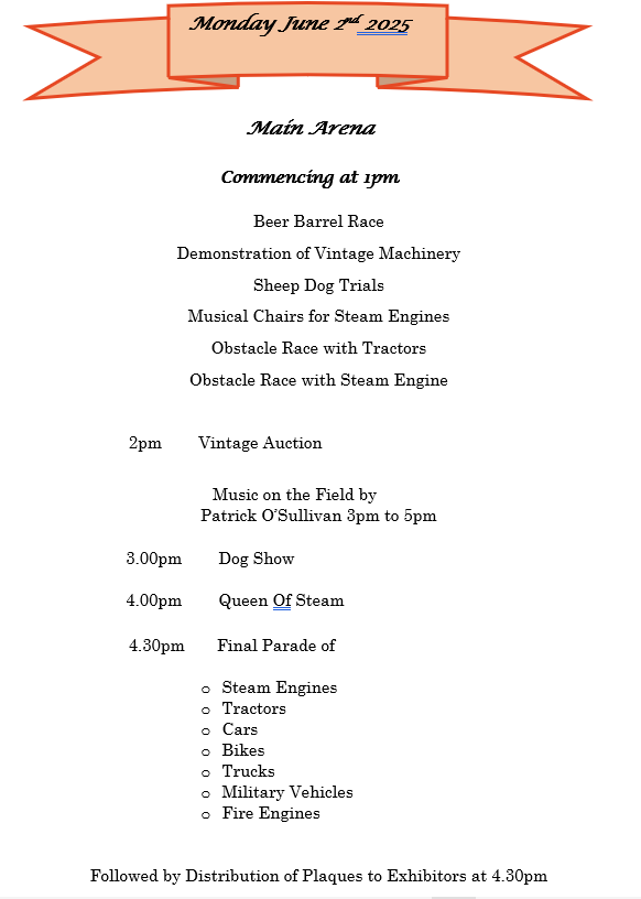 We are looking forward to welcoming you to the 28th Innishannon Steam Rally due to take place on June Bank Holiday Weekend 2025!