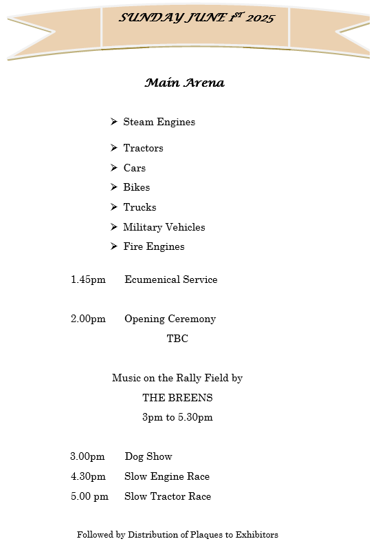 We thank you in advance for your co-operation and look forward to a safe and entertaining Innishannon Steam & Vintage Rally!